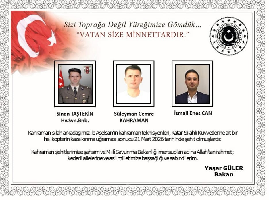 Açıklamaya göre, Katar-Türk Birleşik Müşterek Kuvvet Komutanlığı bünyesinde görev yapan Katar Silahlı Kuvvetleri’ne ait bir helikopter, 21 Mart akşamı teknik arıza nedeniyle kaza kırıma uğrayarak denize düştü.